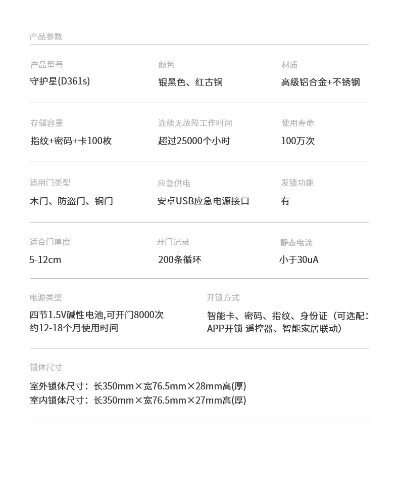 八佰D361S智能指紋鎖